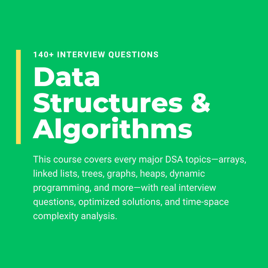 Crack coding interviews at Google, Amazon, and top tech companies with this curated set of 140+ must-know Data Structures & Algorithm questions.Learn real patterns, efficient solutions, and interview-focused strategies across all core DSA topics — from arrays to dynamic programming.
